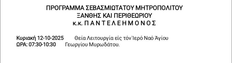 ΠΡΟΓΡΑΜΜΑ ΣΕΒΑΣΜΙΩΤΑΤΟΥ ΜΗΤΡΟΠΟΛΙΤΟΥ ΞΑΝΘΗΣ & ΠΕΡΙΘΕΩΡΙΟΥ κ.κ. ΠΑΝΤΕΛΕΗΜΟΝΟΣ