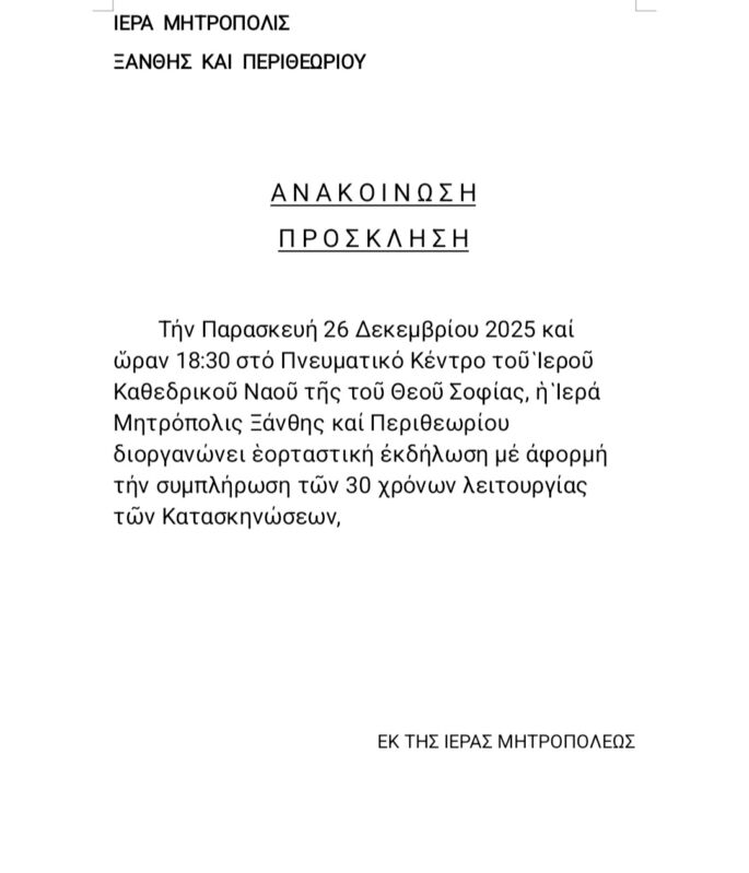 23 Dec 2025 ΑΝΑΚΟΙΝΩΣΗ ΠΡΟΣΚΛΗΣΗ 23 December 2025 6 Views Ανακοινώσεις, Δελτία Τύπου, Εκδηλώσεις, Ενορίες, Επιλεγμένα, Ιερές Μονές, Ιστορικό