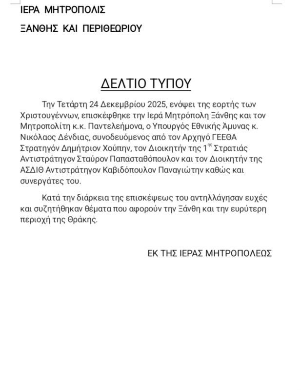26 Dec 2025 ΔΕΛΤΙΟ ΤΥΠΟΥ 26 December 2025 7 Views Ανακοινώσεις, Δελτία Τύπου, Εκδηλώσεις, Επιλεγμένα, Ιστορικό