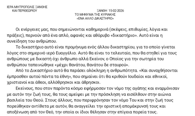 12 Feb 2026 ΤΟ ΜΗΝΥΜΑ ΤΗΣ ΚΥΡΙΑΚΗΣ 12 February 2026 13 Views Ανακοινώσεις, Δελτία Τύπου, Ενορίες, Επιλεγμένα, Ιερές Μονές, Ιστορικό, Το κήρυγμα της Κυριακής