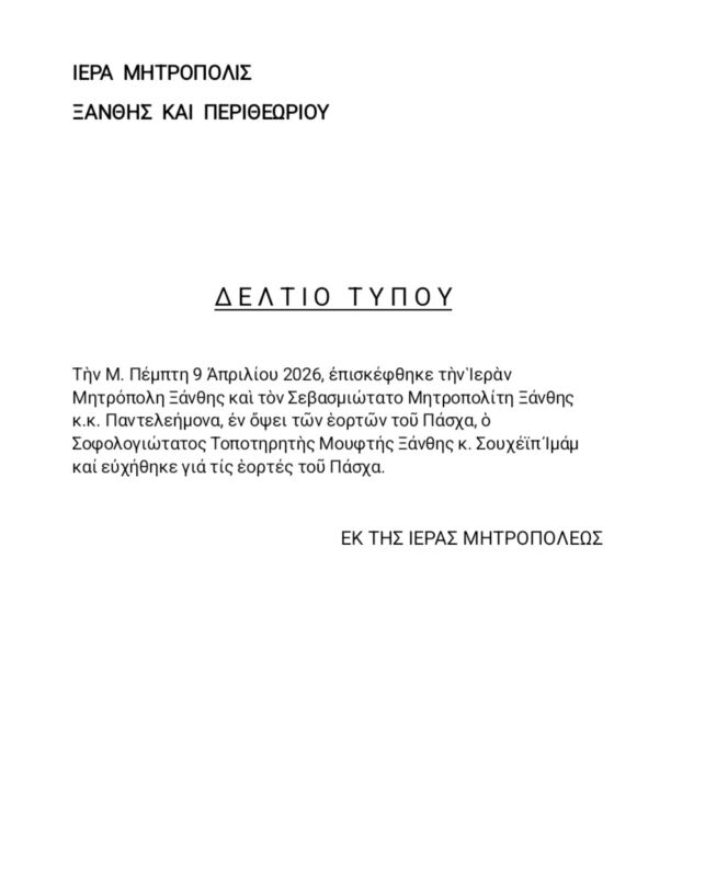 10 Apr 2026 ΔΕΛΤΙΟ ΤΥΠΟΥ 10 April 2026 7 Views Ανακοινώσεις, Δελτία Τύπου, Εκδηλώσεις, Επιλεγμένα, Ιστορικό