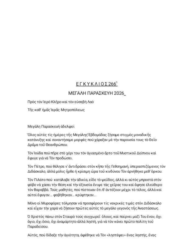 ΕΓΚΥΚΛΙΟΣ 266η ΜΕΓΑΛΗ ΠΑΡΑΣΚΕΥΗ 2026