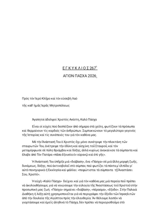 ΕΓΚΥΚΛΙΟΣ 267η ΑΓΙΟΝ ΠΑΣΧΑ 2025