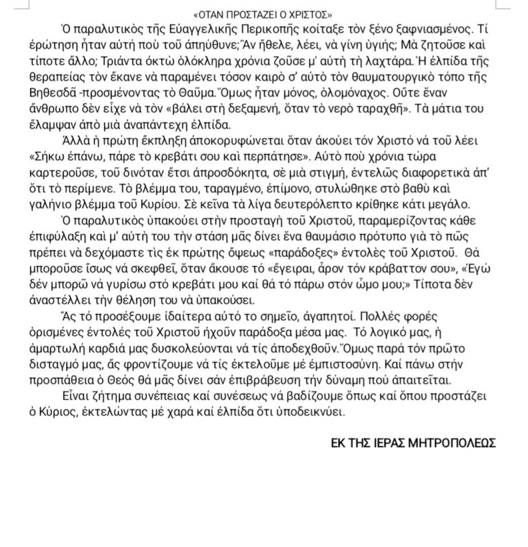 30 Apr 2026 ΤΟ ΜΗΝΥΜΑ ΤΗΣ ΚΥΡΙΑΚΗΣ 30 April 2026 14 Views Ανακοινώσεις, Δελτία Τύπου, Ενορίες, Επιλεγμένα, Ιερές Μονές, Ιστορικό, Το κήρυγμα της Κυριακής